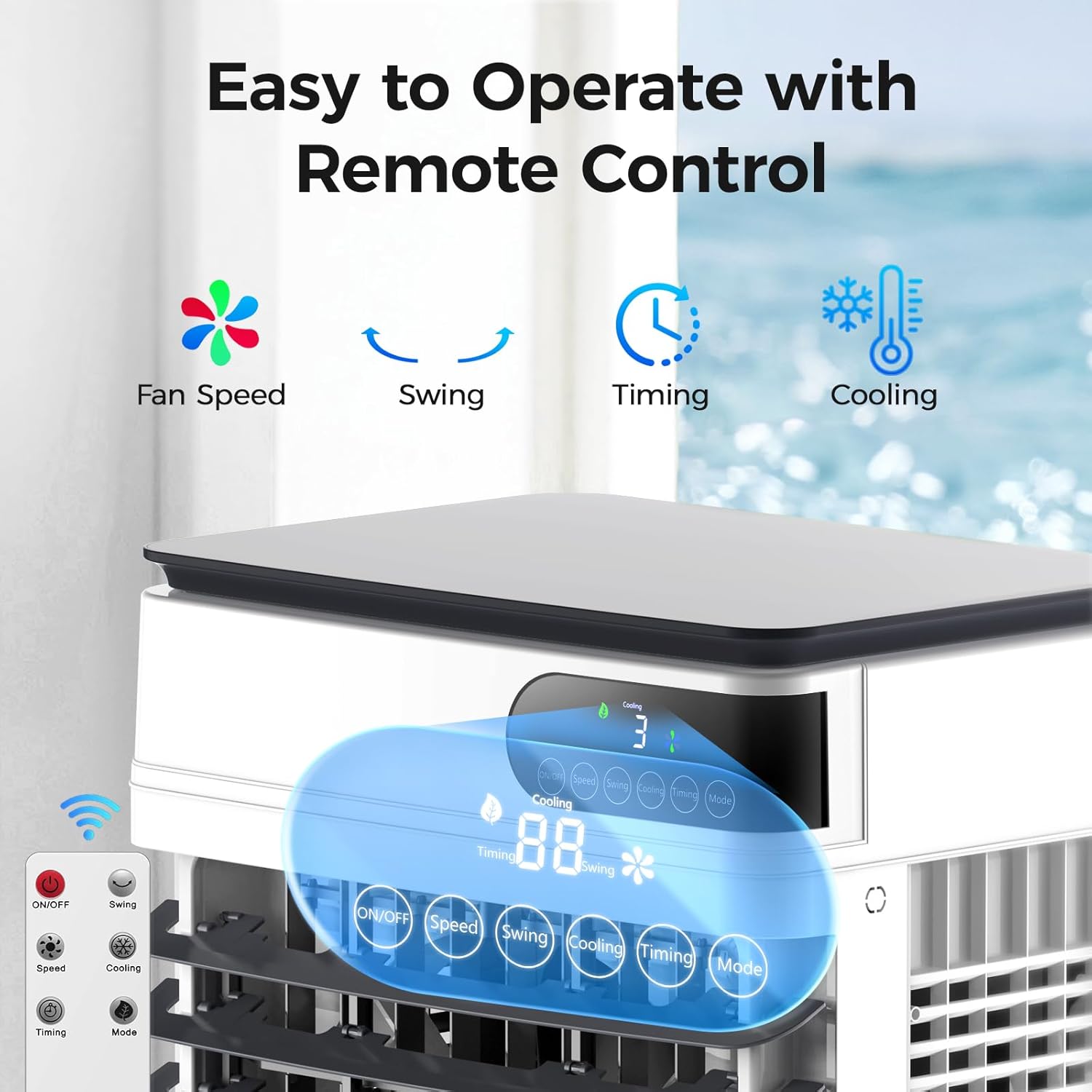 CONVENIENT REMOTE CONTROL & TIMER FUNCTION: Take control of your comfort with the included remote control, which allows you to effortlessly adjust fan speed, cooling mode, and timer settings. The 12-hour programmable timer not only meets your needs but also helps save energy, making it a smart choice for eco-conscious users. Set it and forget itβyour comfort is just a click away