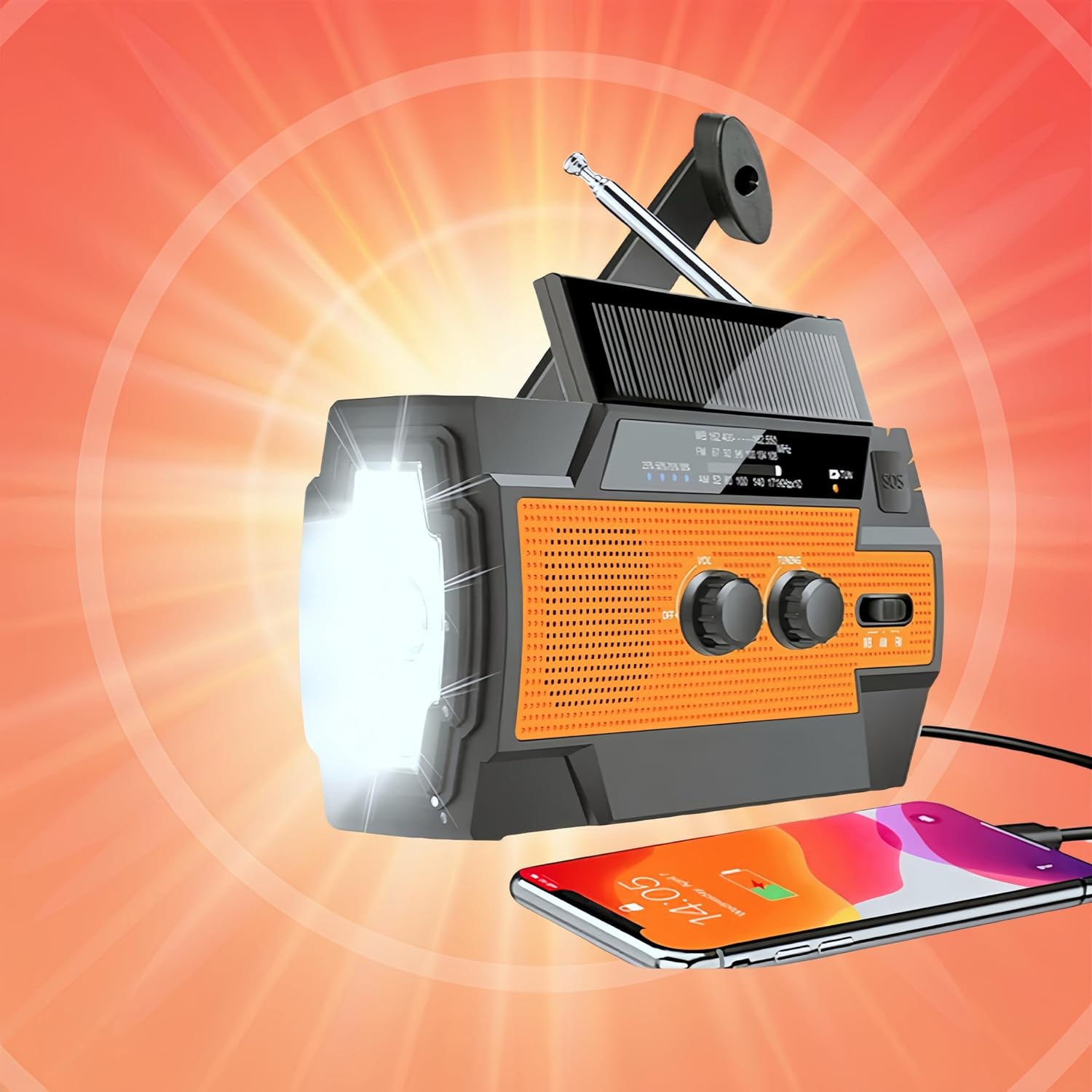 ☀️ Triple Charging Options Crank it, charge it by USB, or leave it in the sun—no matter what, you’ll have power when you need it most.