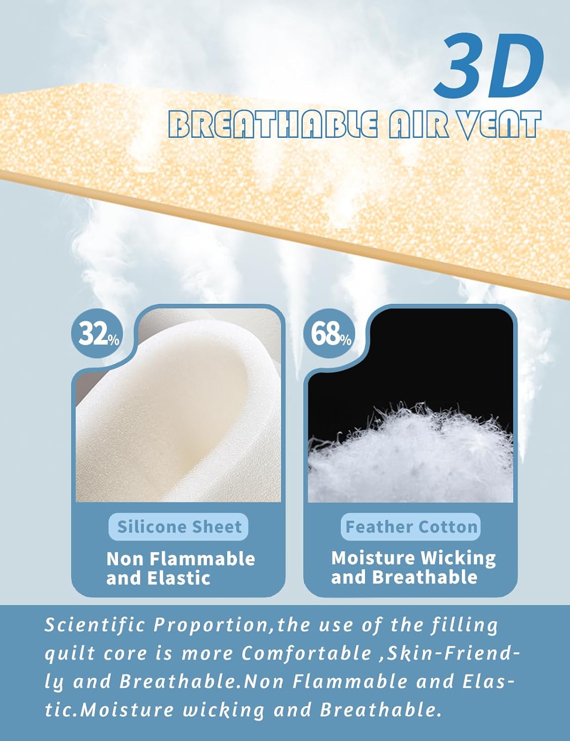 【High-Tech Silicone Filling】 This Cooling Comforter for Hot Sleepers Uses Premium Silicone as the Filling Material, Offering Excellent Temperature Regulation, Maintaining Stability and Comfort in Extreme Hot or Cold Environments. This Cold Blanket Perfect for Outdoor camping, Polar Expeditions, and Other Special Conditions. The Softness and Elasticity of Silicone Make the Quilt More Comfortable While Providing Great Support. Whether for Home use or Outdoor Activities, it Ensures an Exceptional Sleep Experience.