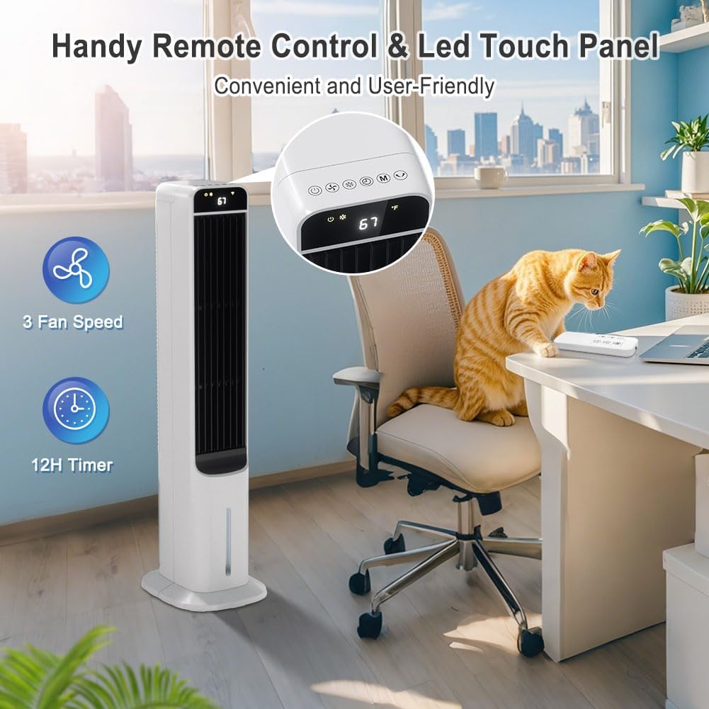 Easy to Operate and Move: Stay cool with this versatile room cooler! Control it easily from the top or use the remote for added convenience. Its lightweight design and built-in handle allow you to move it anywhere, while the compact build ensures it can be stored in tight spaces without taking up much room