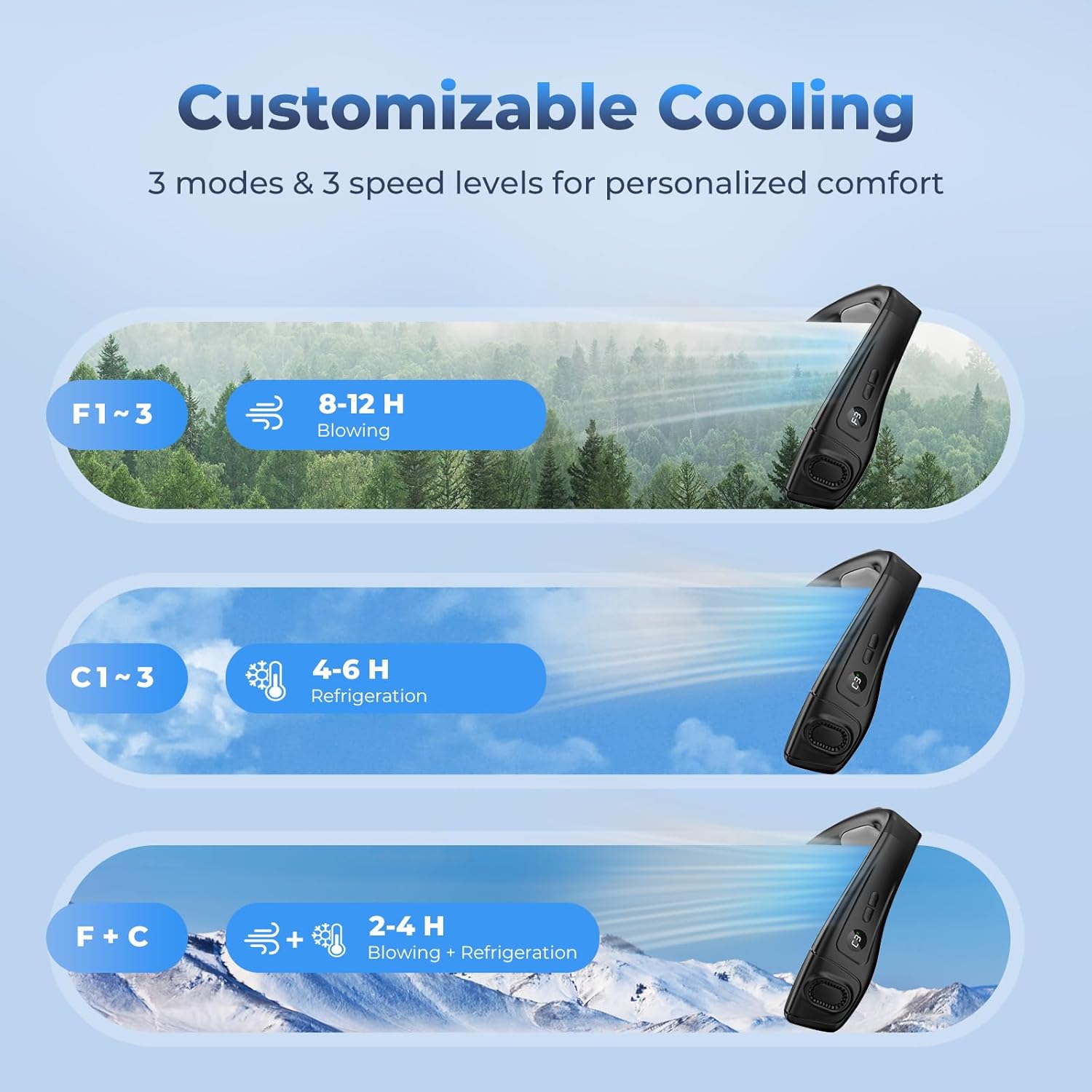 All Day Power, Anywhere You Go — Equipped with an 8000mAh battery, this wearable neck fan keeps the cool coming for 2 to 12 hours. Recharge via USB-C and use it while charging. Whether you’re commuting, hiking, or just surviving summer, this personal fan has your back.