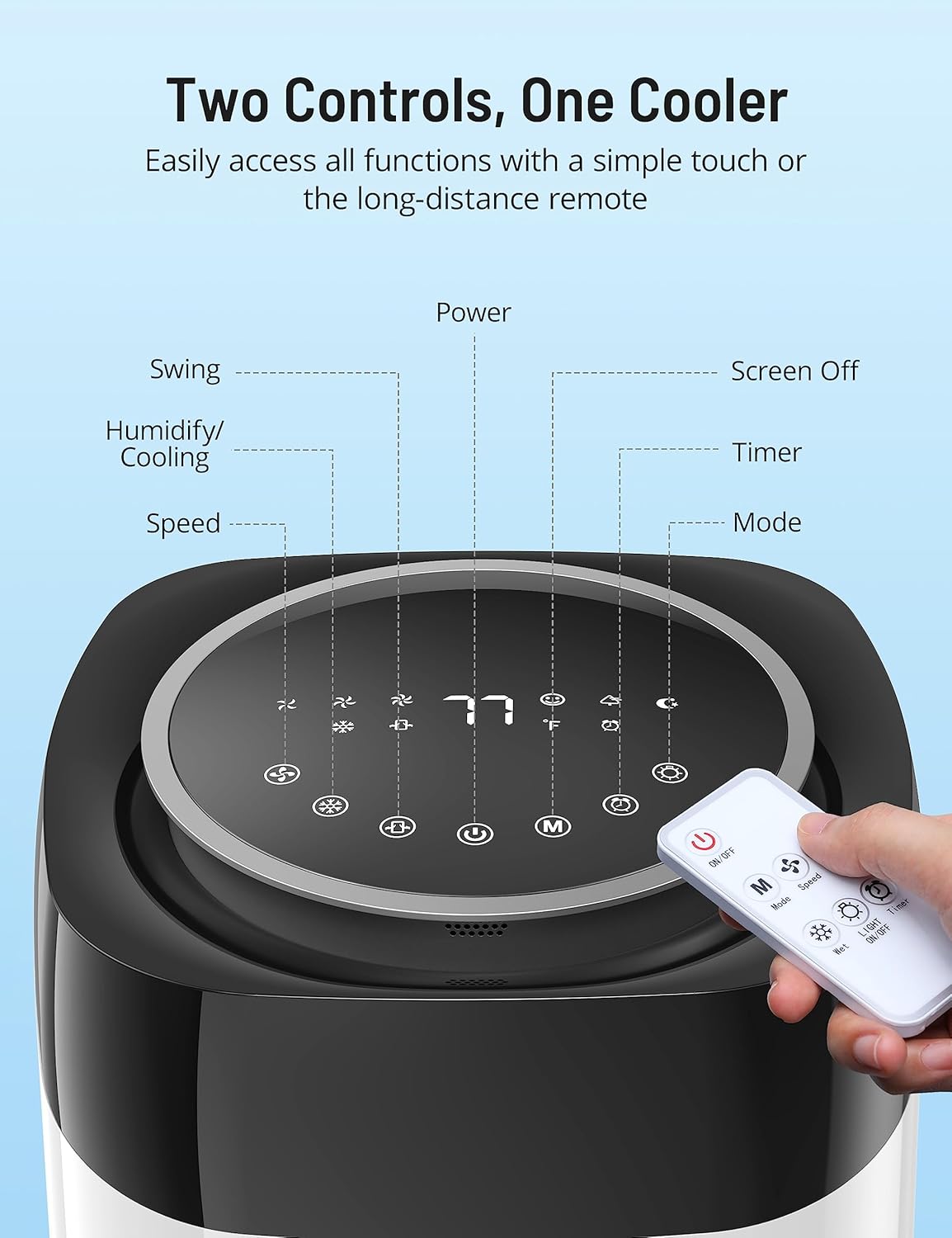 Intelligent Touch Panel & Remote Control: The air cooler for room is designed with a touch panel, so you can get close and adjust the wind mode, speed, timer, and more with just a simple touch. The portable air conditioner included remote control that lets you kick back on a chair or sofa and control it from afar.