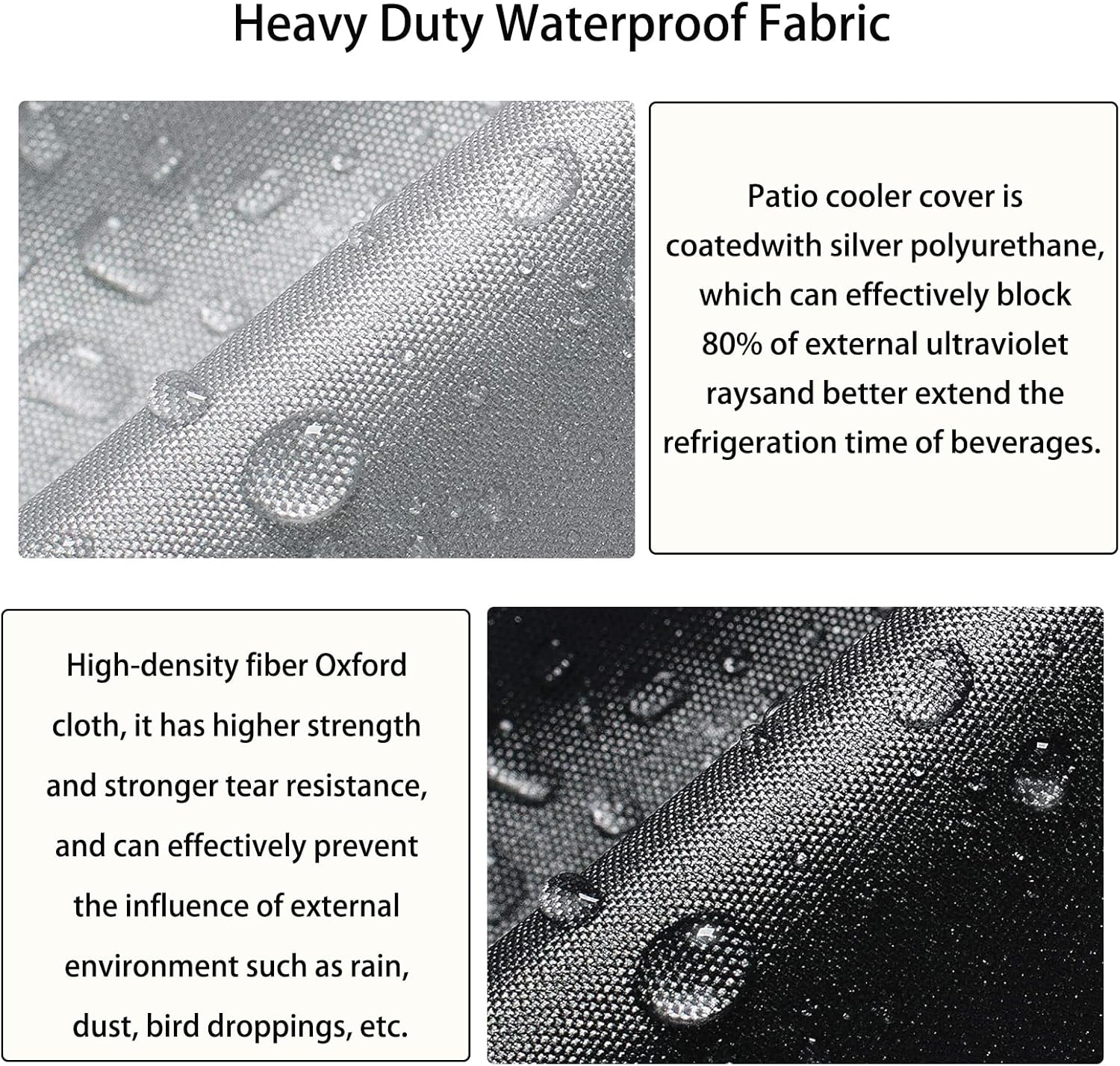 【Sun protection and heat insulation, keep cold】: Taking into account the outdoor usage environment in summer,The inner lining of the patio cooler cover is coated with silver polyurethane, which can effectively block 80% of external ultraviolet rays and better extend the refrigeration time of beverages.